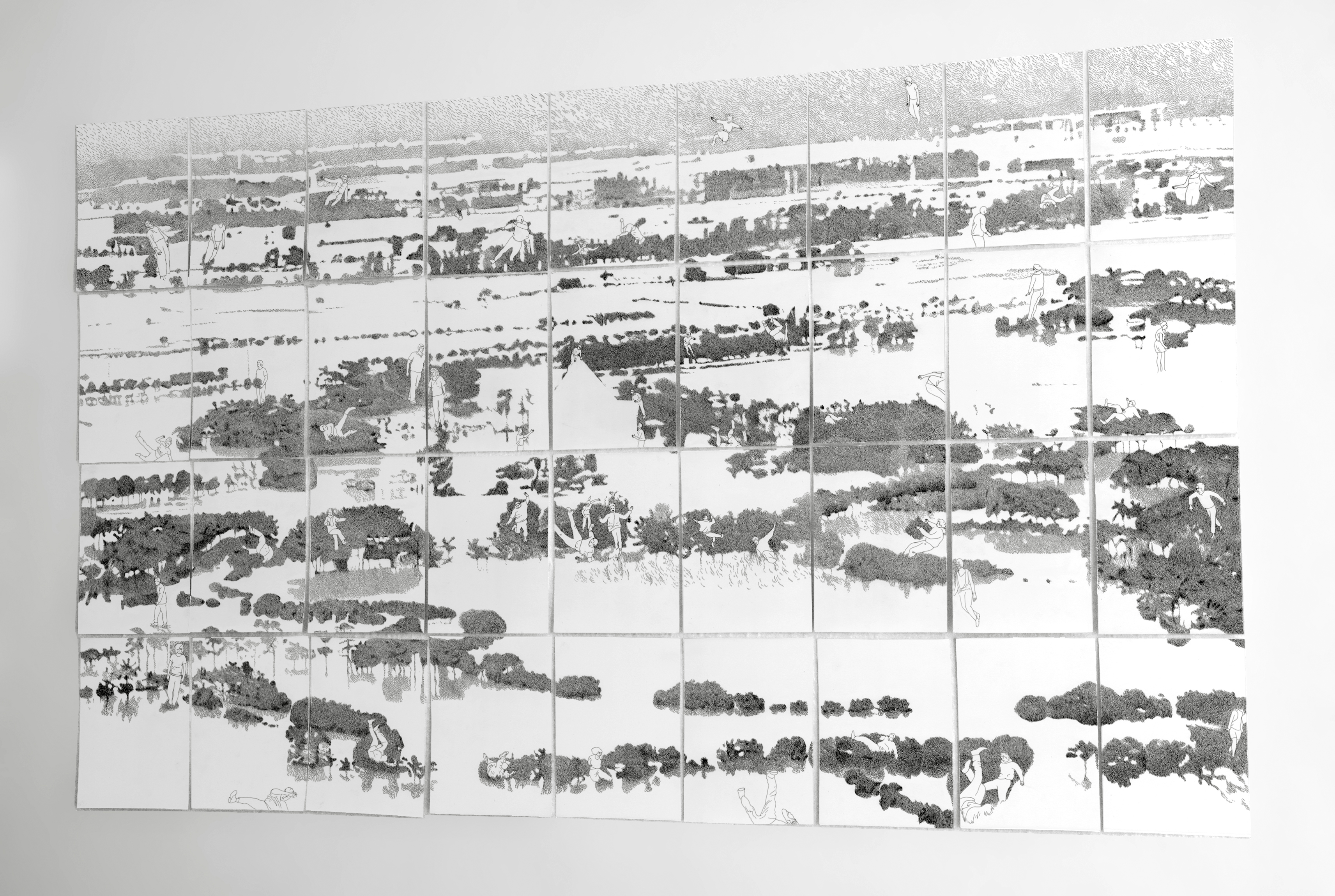 86 x 140 cm, 36 drawings (21 x 15 cm each), india ink on paper, 2013